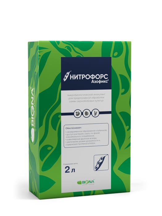 Живые клетки бактерий Mesorhizobium ciceri (нут), Rhizobium leguminosarum (горох, чечевица), Sinorhizobium meliloti (люцерна), Rhizobium lupini (люпин), Rhizobium phaseoli (фасоль). Не менее 2,5×10^9 КОЕ/мл