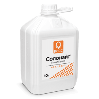 Действующих (сухих) веществ: 6 % (60 г/л), из них: гуминовые кислоты и их соли – 80 % (48 г/л); органические кислоты, их соли, прочая органика – 6 % (3,6 г/л); фульвокислоты – 10 % (6 г/л); макроэлементы, г/л (N < 1,2, P < 0,5, K < 3,0), микроэлементы; углеводы – 4 % (2,4 г/л).