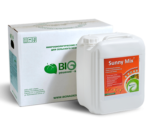 N - 20,8 г/л, P2O5 - 6,5 г/л, K2O - 6,9 г/л, Zn - 5,0 г/л, Cu - 1,4 г/л, B - 2,9 г/л, Mn - 7,8 г/л, Mo - 0,15 г/л, Co - 0,02 г/л, Fe - 1,0 г/л, MgO - 6,9 г/л, АМК - 20 г/л