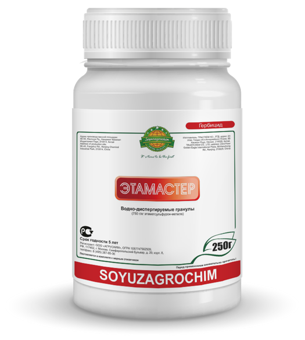 Этаметсульфурон-метил ингибирует фермент ацетолактатсинтазу, нарушая синтез незаменимых аминокислот.