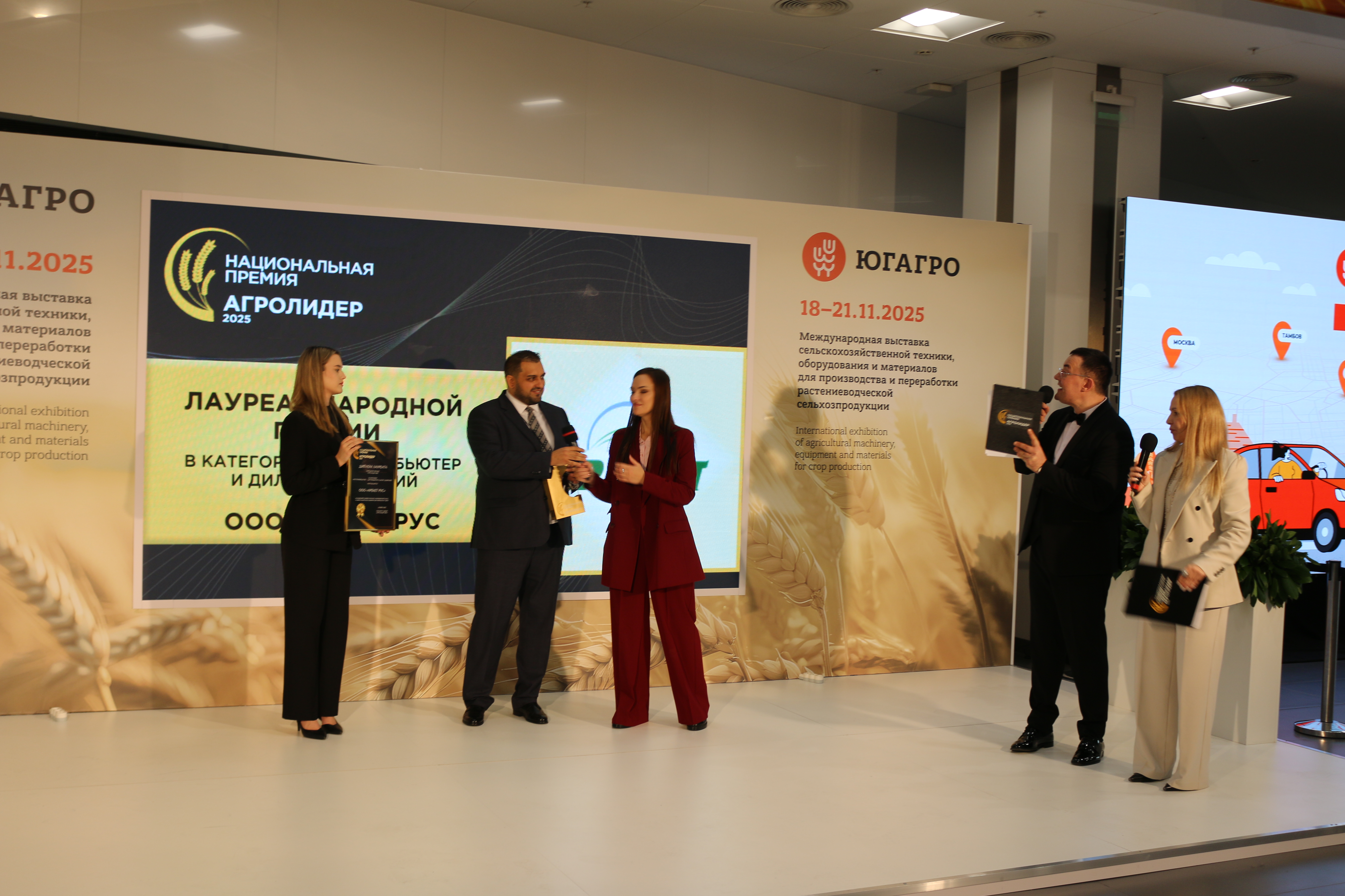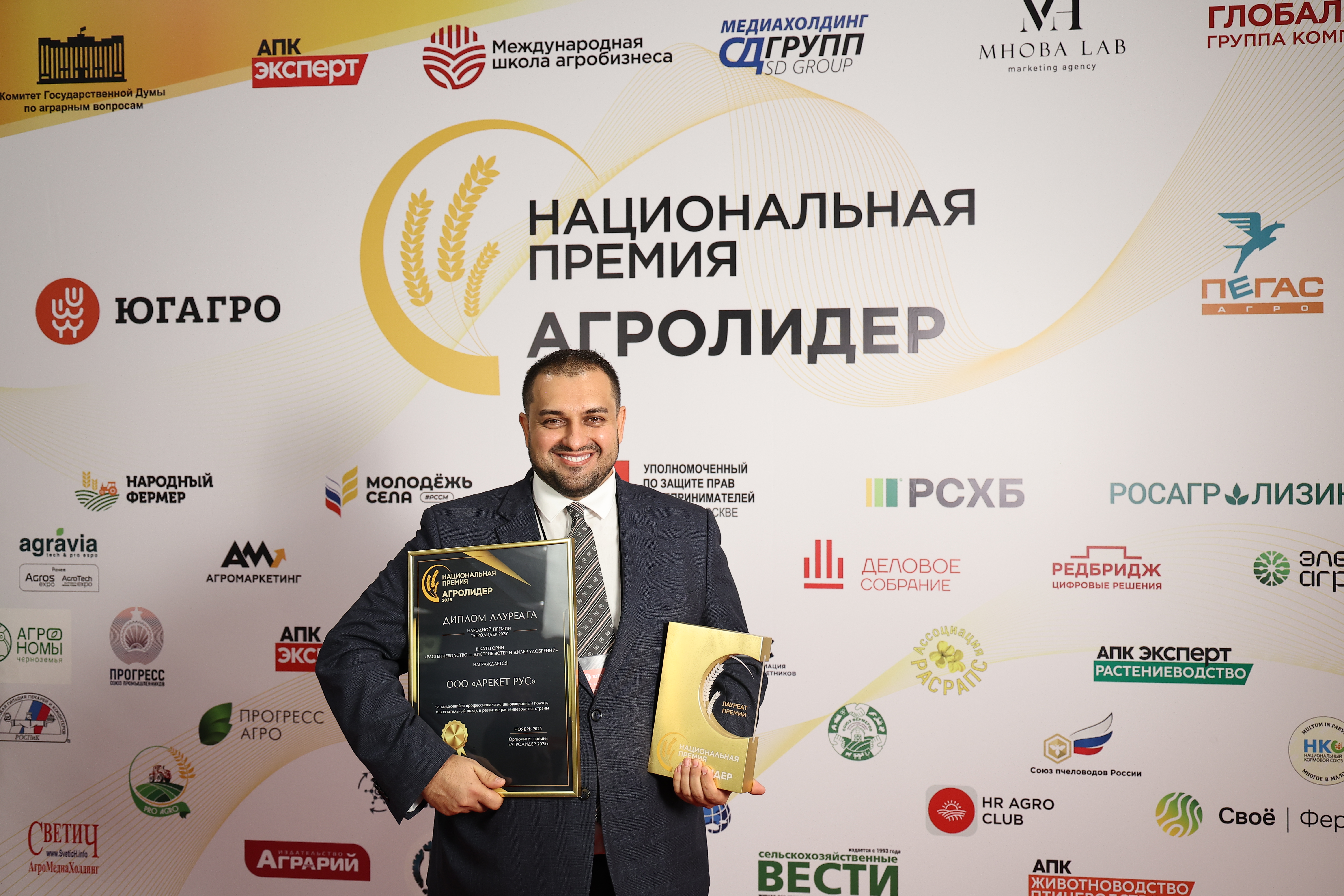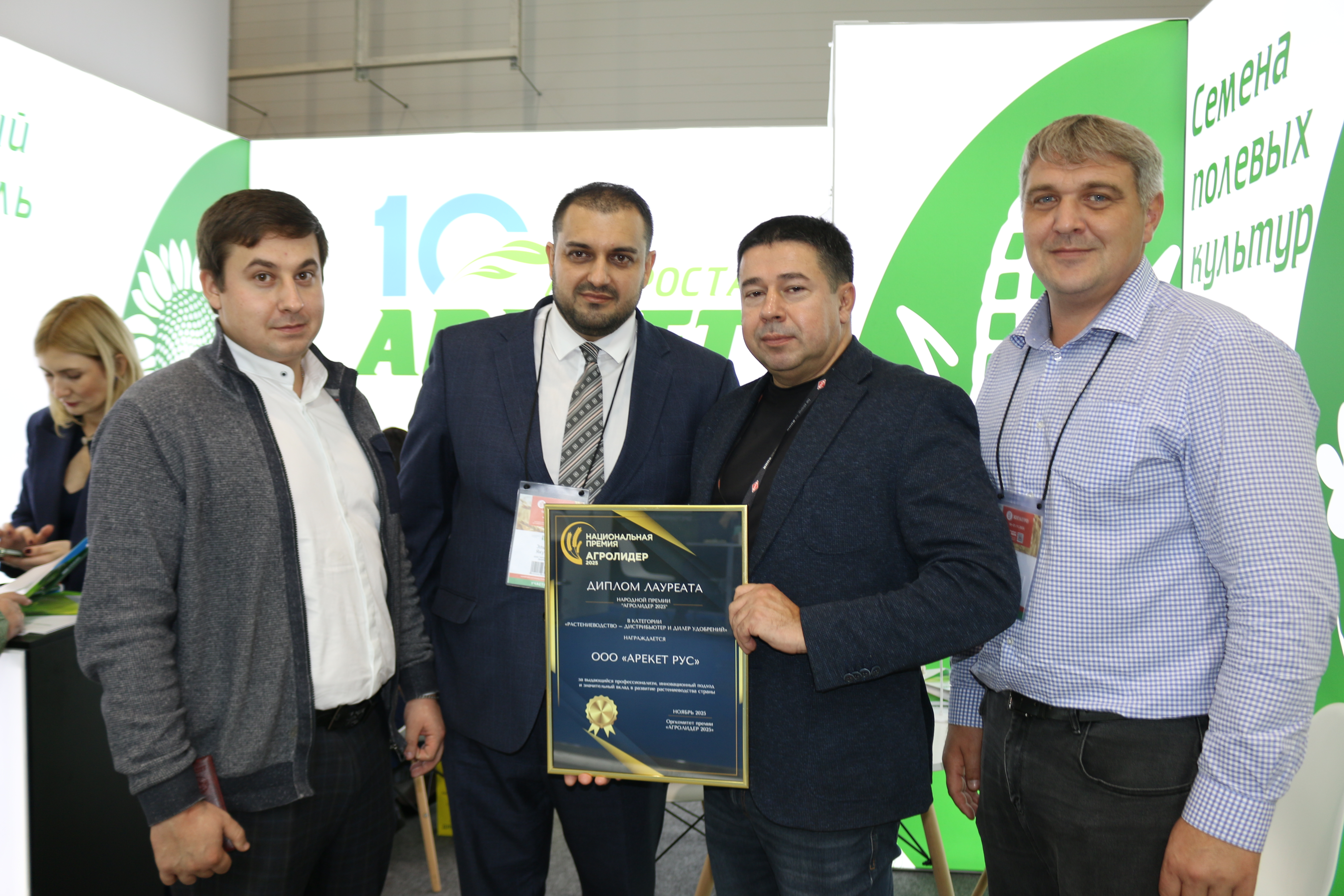 Одним из ключевых моментов нашего участия стала торжественная церемония награждения премии «АГРОЛИДЕР 2025», которая состоялась 20 ноября в рамках выставки. По результатам народного голосования ООО «АРЕКЕТ РУС» было удостоено звания победителя! Мы с гордостью приняли памятную статуэтку и Диплом лауреата, подтверждающие наш выдающийся профессионализм, инновационный подход и значительный вклад в развитие растениеводства страны.